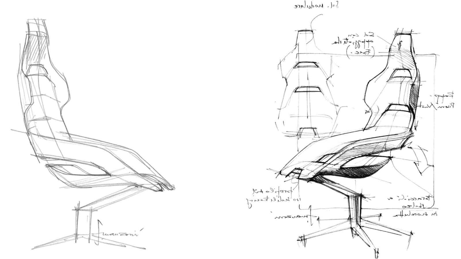 À l’occasion des 70 ans de Ferrari, Poltrona Frau a l’idée de lui rendre hommage en redéfinissant l’image des chaises de bureau réalisées pour Ferrari. De cette vision, apparaitront les premiers croquis de la « Cockpit ». Il ne s’agit pas d’un siège automobile, ni d’un simple élèment de mobilier ou de design. L’idée est de créer une sorte d’hybride contemporain, permettant la rencontre de deux marques mythiques, de deux mondes sources d’inspiration, de deux philosophies.