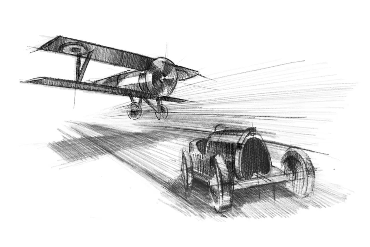 Ceci étant, il n’est nullement surprenant qu’Ettore Bugatti soit devenu aussi fasciné par l’aviation qu’il ne l’était par l’automobile. Au même titre, il n’était pas surprenant que les pilotes les plus audacieux de l’époque aient été fascinés par les véhicules agiles et rapides de Bugatti, ces derniers incarnant sur la route ce que leurs avions étaient dans le ciel.