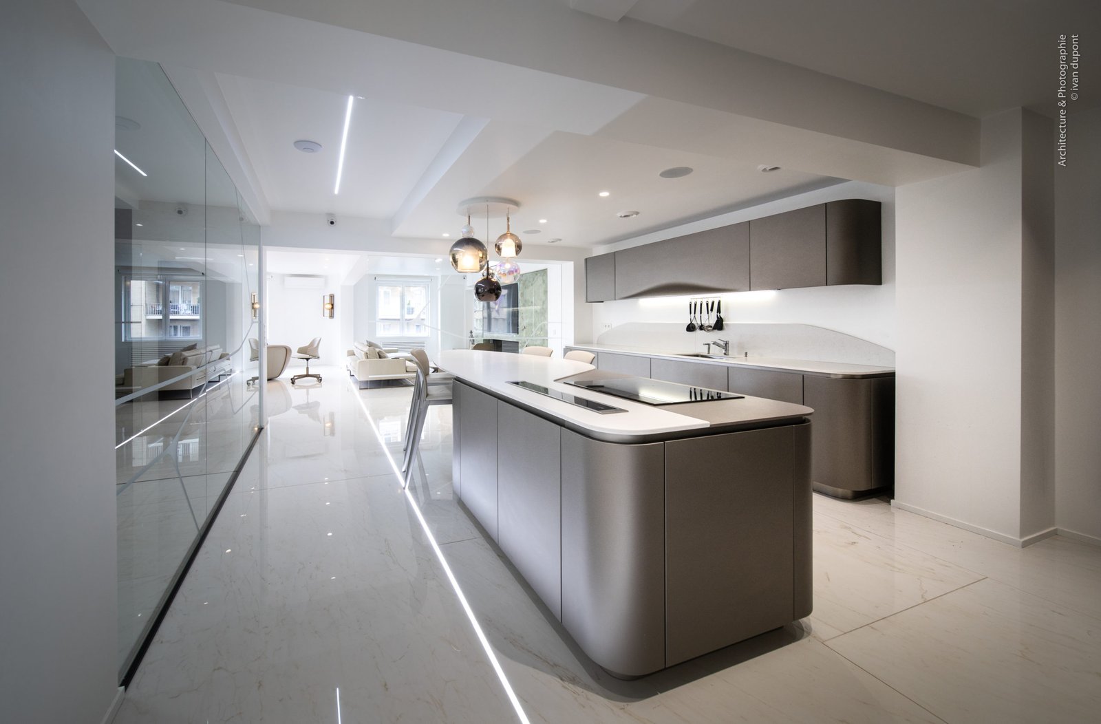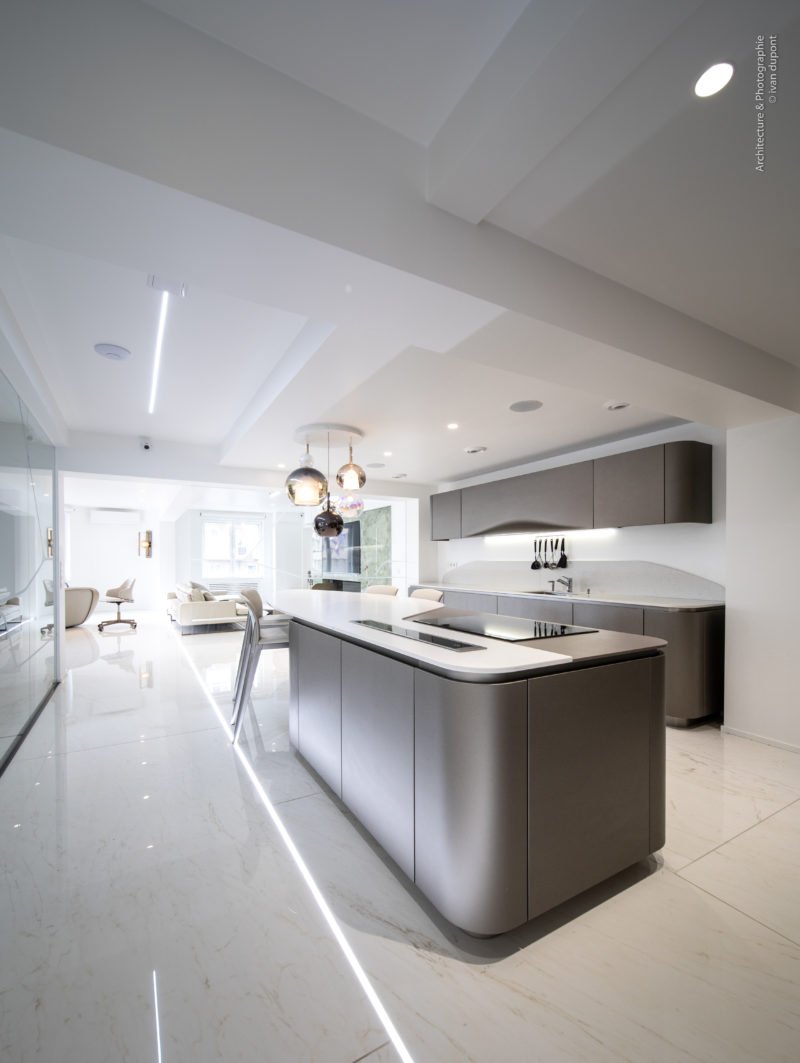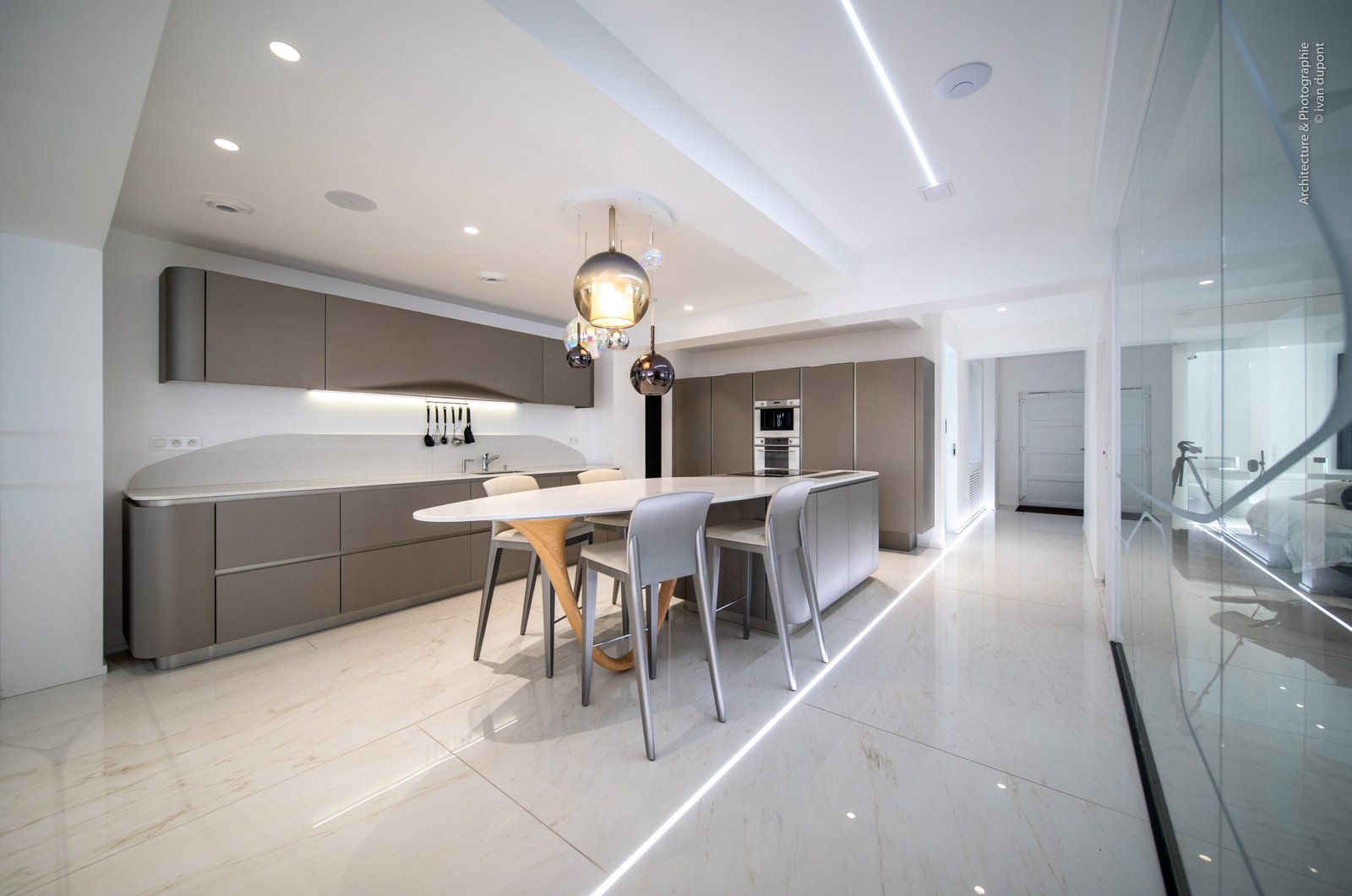 S’il fallait illustrer le souci du détail, cette réalisation en serait sans aucun doute le tableau le plus fidèle. Fruit d’une rénovation digne des plus surprenants clichés avant/après, cette maison, au départ classique, s’est vue métamorphosée en joyau contemporain abritant le must-have du mobilier de luxe.