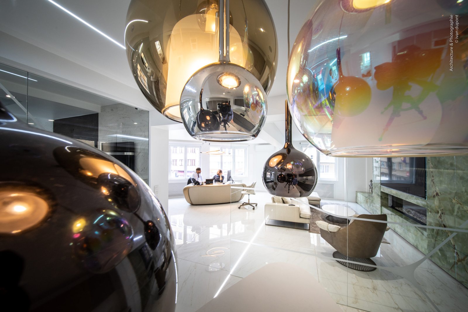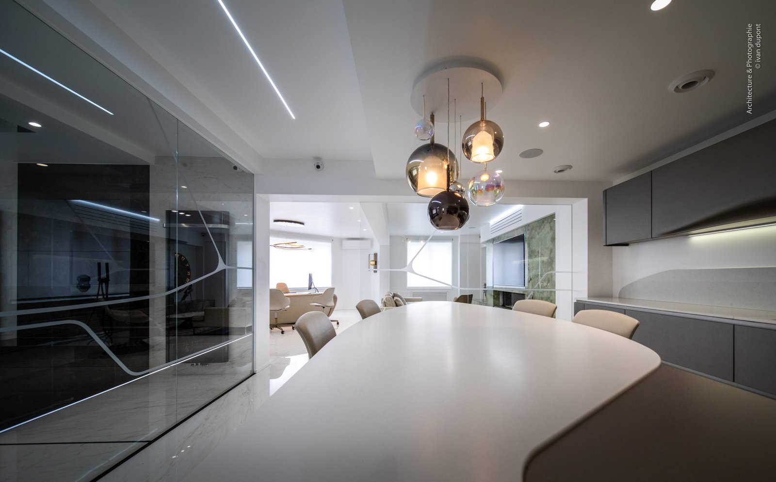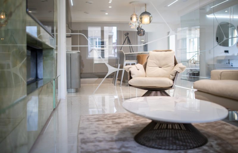 Des chaises, imaginées par le designer automobile Pininfarina (Ferrari F40, Testarossa, etc.) viennent encadrer ce bijou de cristal. Cet ensemble signé Reflex a par ailleurs conquis des territoires très prisés, puisque le célèbre footballeur Zlatan Ibrahimovic s’est dernièrement équipé de ce modèle de chaises, cinq ans après que D-Style en ai fait les protagonistes de la décoration de cet espace. Un choix précurseur, qui confirme le flair d’I. Boufrahi pour les pièces d’exception au destin prometteur.