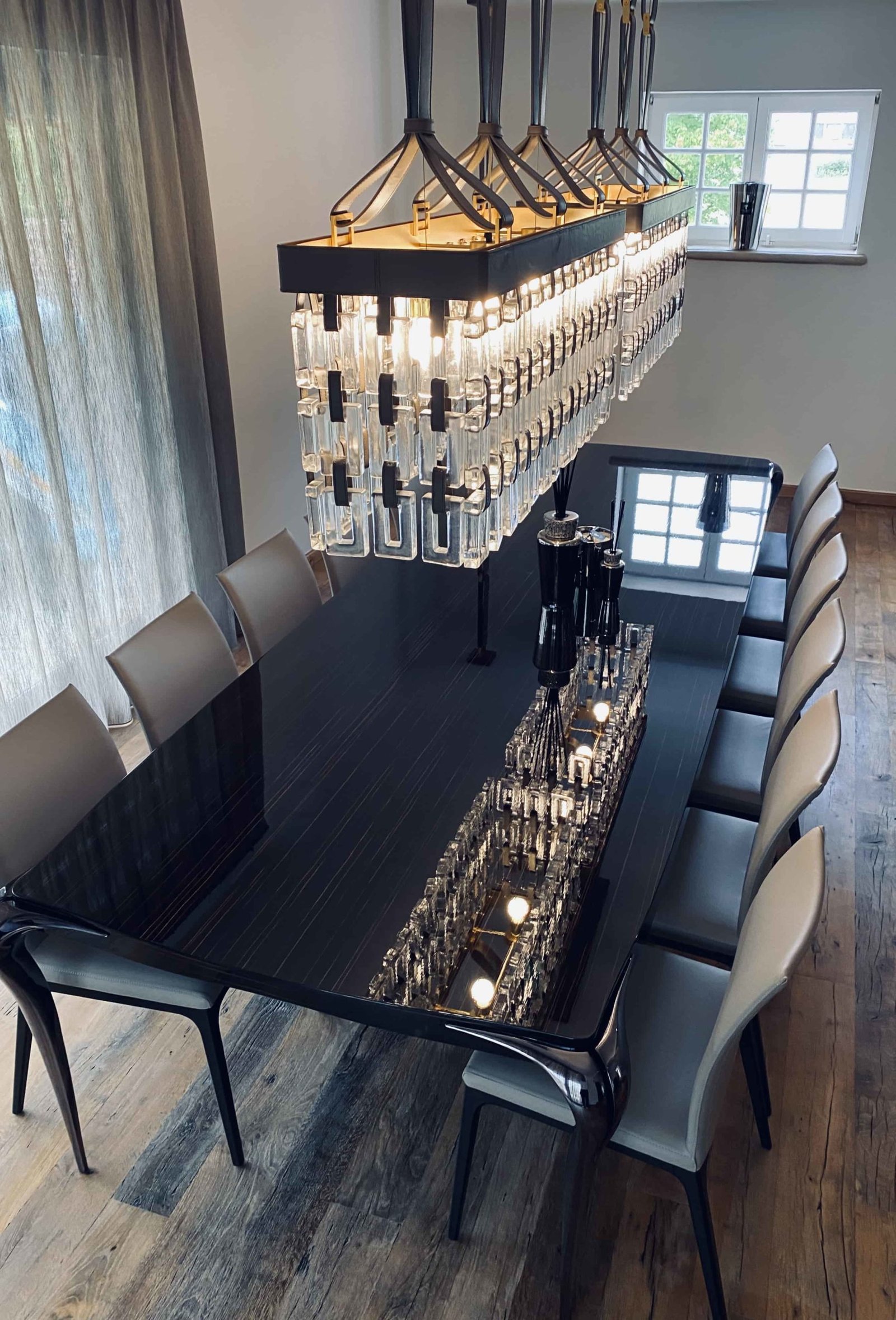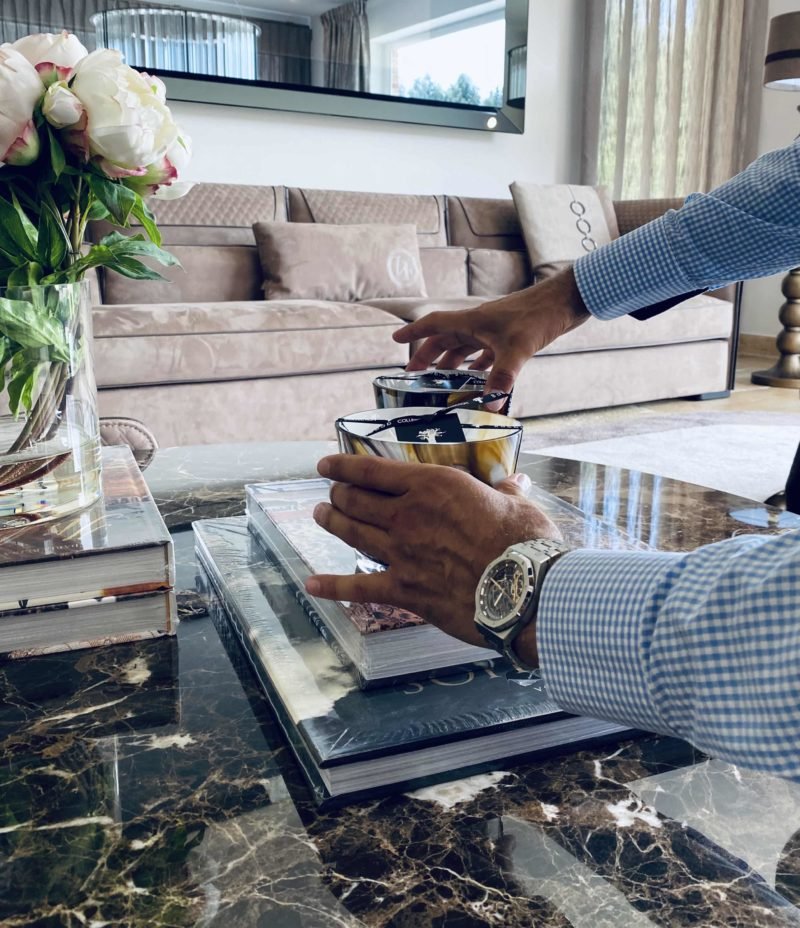 Des chaises, imaginées par le designer automobile Pininfarina (Ferrari F40, Testarossa, etc.) viennent encadrer ce bijou de cristal. Cet ensemble signé Reflex a par ailleurs conquis des territoires très prisés, puisque le célèbre footballeur Zlatan Ibrahimovic s’est dernièrement équipé de ce modèle de chaises, cinq ans après que D-Style en ai fait les protagonistes de la décoration de cet espace. Un choix précurseur, qui confirme le flair d’I. Boufrahi pour les pièces d’exception au destin prometteur.