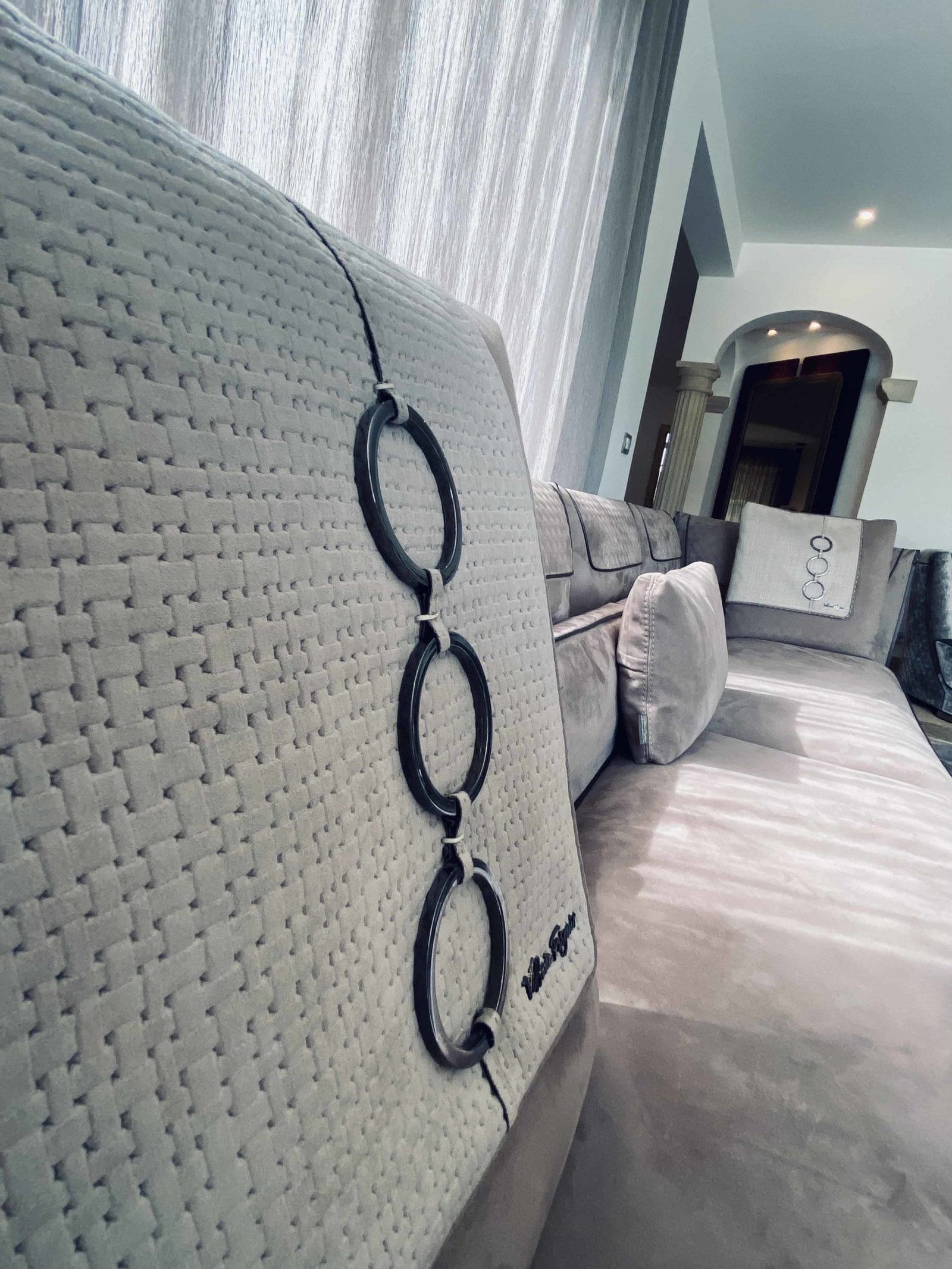 Jouissant d’une totale liberté en terme de style, notre maître décorateur, Ismaël Boufrahi, a pu exercer sans contrainte son sens affuté du détail, observable notamment à travers l’aménagement du salon. Ici, rien n’a été laissé au hasard. Notez l’alignement impeccable entre la table basse et le faux plafond ; ou encore le parfait unisson entre les lignes du canapé et le tableau au mur. Cette pièce à vivre se distingue également par l’absolue discrétion d’éléments visuels parasites; dans son extrême minutie, I. Boufrahi a fait pré-trouer les meubles pour faire disparaître, entre autres, les câblages disgracieux. « J’ai poussé le sens du détail très loin », explique-t-il. « J’avais envie de montrer jusqu’où il est possible d’aller si l’on décide d’exploiter au maximum le potentiel de l’espace mais aussi son propre potentiel face au design d’intérieur. »