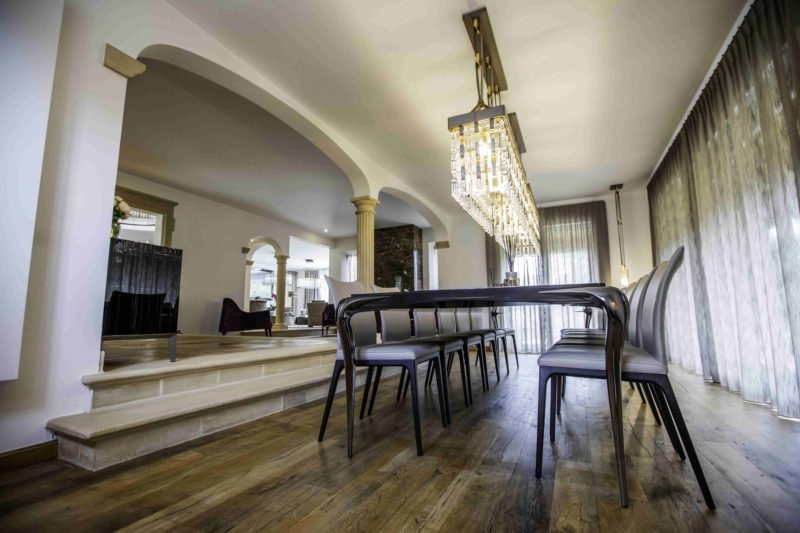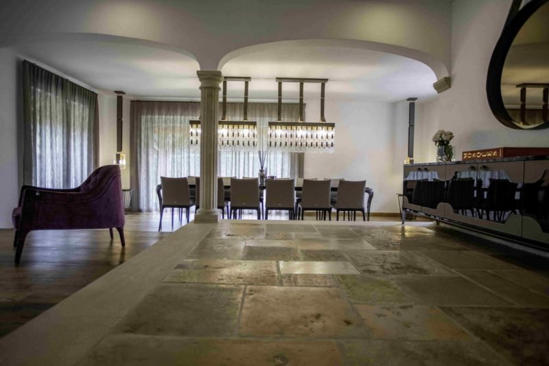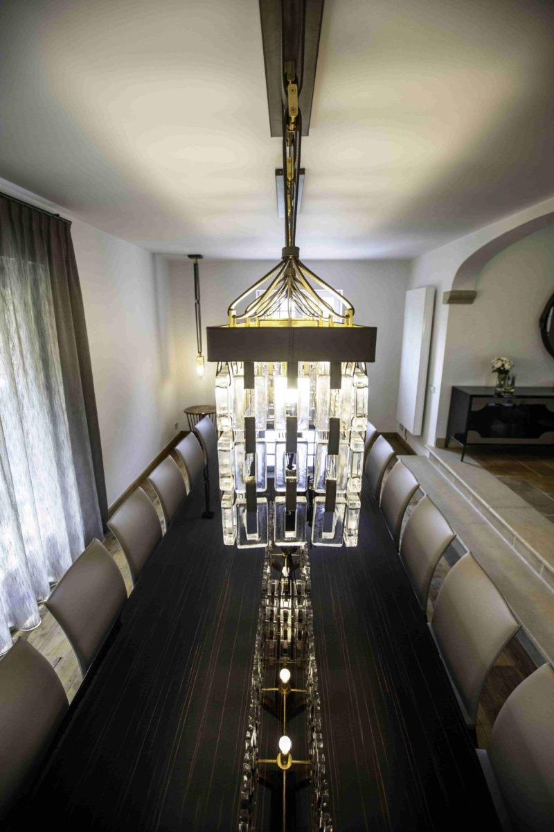 Dans la salle à manger, il était question de mettre à l’honneur une marque, Reflex, à travers une table, époustouflante, la Reflex Transeo 72, ici fabriquée sur mesure dans une longueur exceptionnelle de 380 cm. Enième symbole du souci de perfection qui a animé I. Boufrahi dans le cadre de cette réalisation, cette commande spécifique avait pour vocation de faire correspondre au millimètre près cette sublime pièce de mobilier aux châssis lui faisant face.